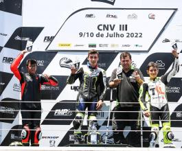 O piloto brigantino foi terceiro classificado na terceira prova do Campeonato Nacional de Velocidade. Tiago Rafael fez a estreia 85GP/Moto 4 e no Autódromo do Estoril.