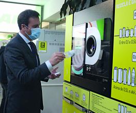 Máquina instalada no mercado recebe lixo e converte-o em vales de desconto
